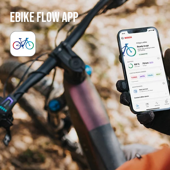- Vernetzung mit eBike Flow App für Fahrdaten und Updates